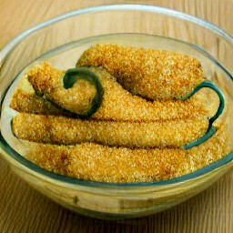 Transfer breaded-stuffed jalapeno peppers to a plate and set them aside for 10 minutes.