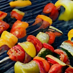 Spray grill pan with cooking spray and heat. Cook for 5 minutes, then add vegetable kebabs to the pan. Grill for an additional 5 minutes.