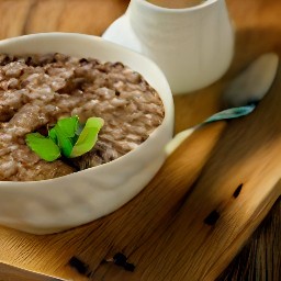 Combine chocolate powder and oatmeal in a bowl. Stir the mixture with a spoon. Mix in a half cup of water and microwave the bowl on high for 1 minute to get cooked oatmeal.