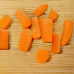 Spread the sweet potato chunks and carrots chunks in a roasting tin. Drizzle with 2 tbsp of olive oil. Sprinkle with salt and 1 tsp black pepper.