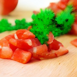 Heat olive oil in a pan. Stir in garlic with a wooden spoon. Add lemon zest and whipping cream. Cook for 8 minutes, then add tomatoes, parsley, parmesan cheese, and rigatoni pasta. Stir once more to get a lemon and cheese cream pasta.