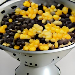 Put the black beans in a bowl. Mix in the corn, tomatoes, red onions, cilantro, jalapeno peppers, and lime juice with a spoon. Drizzle with olive oil, half a tsp of salt, black pepper, and hot sauce. Mix everything together, then add cooked brown rice. Stir everything together with a salad mixing spoon to get rice with corn and beans.