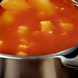 Heat a saucepan and add vinegar. Stir in soy sauce, pineapple, and granulated sugar mixture for 2 minutes with a wooden spoon.