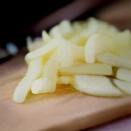 Put olive oil in a blender. Add cider vinegar, ketchup, maple syrup, salt, paprika, chopped onions, and garlic. Blend to get a garlic mixture.